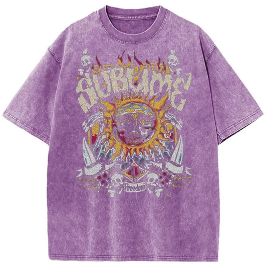 Sun Pattern Acid Washed T-Shirt – Oversized Unisex Vintage Graphic Tee