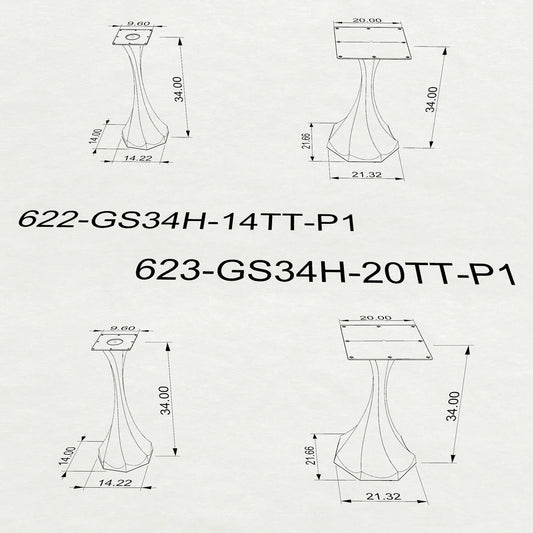 Counter Table Base 622/623 Lithe 34" H Mid-Century Style