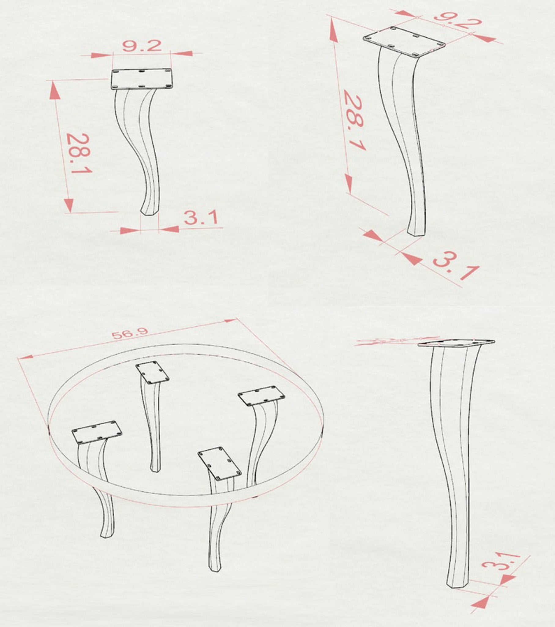 - Compact Mounting Plate: Each leg has a wide plate with perfectly placed pre-drilled holes. Small enough to fit tight spaces but strong enough to lock your desktop securely in place with any material.