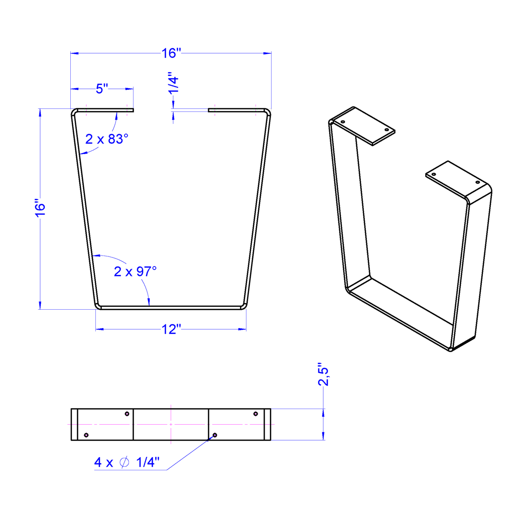 - - Steel thickness: 1/4", 3/8"