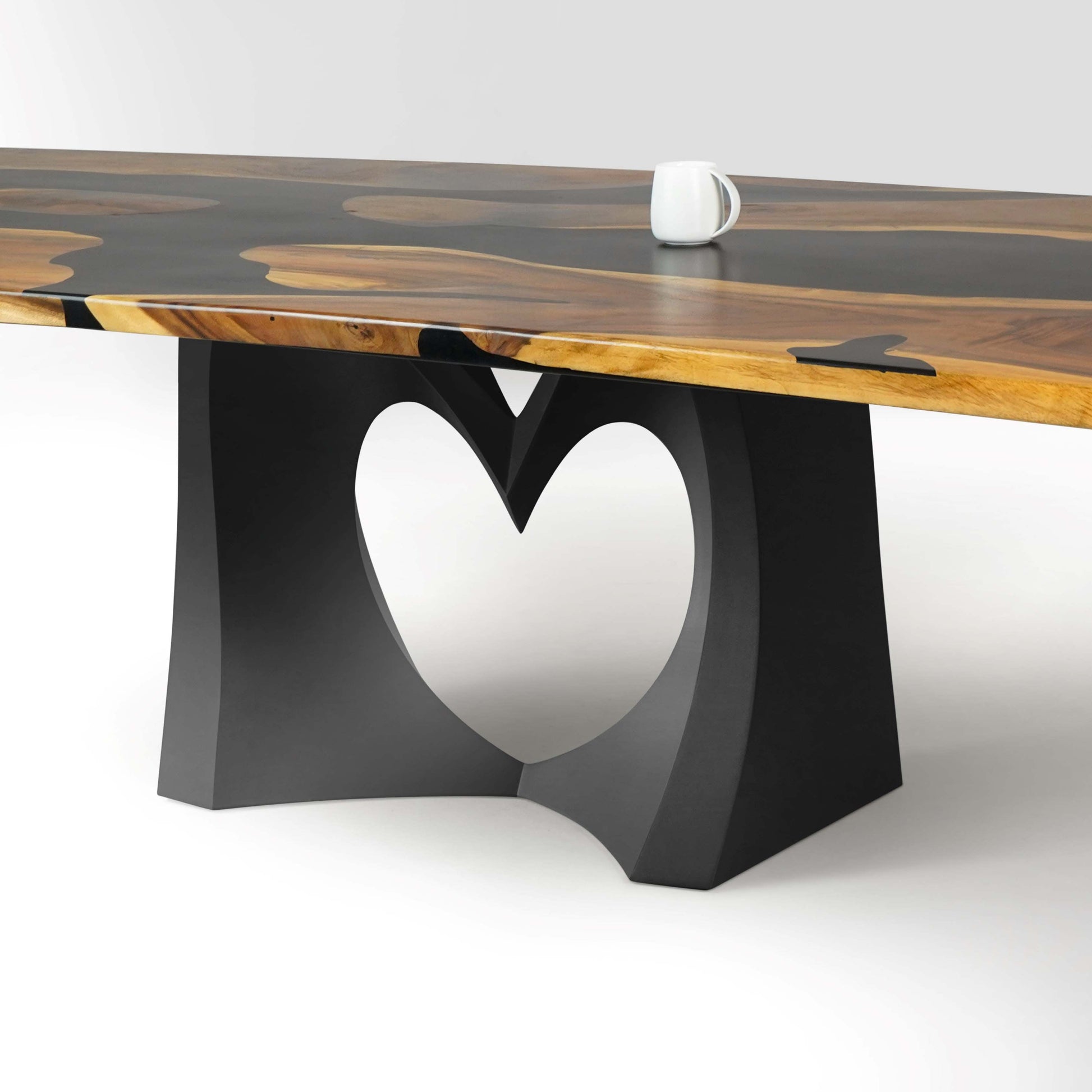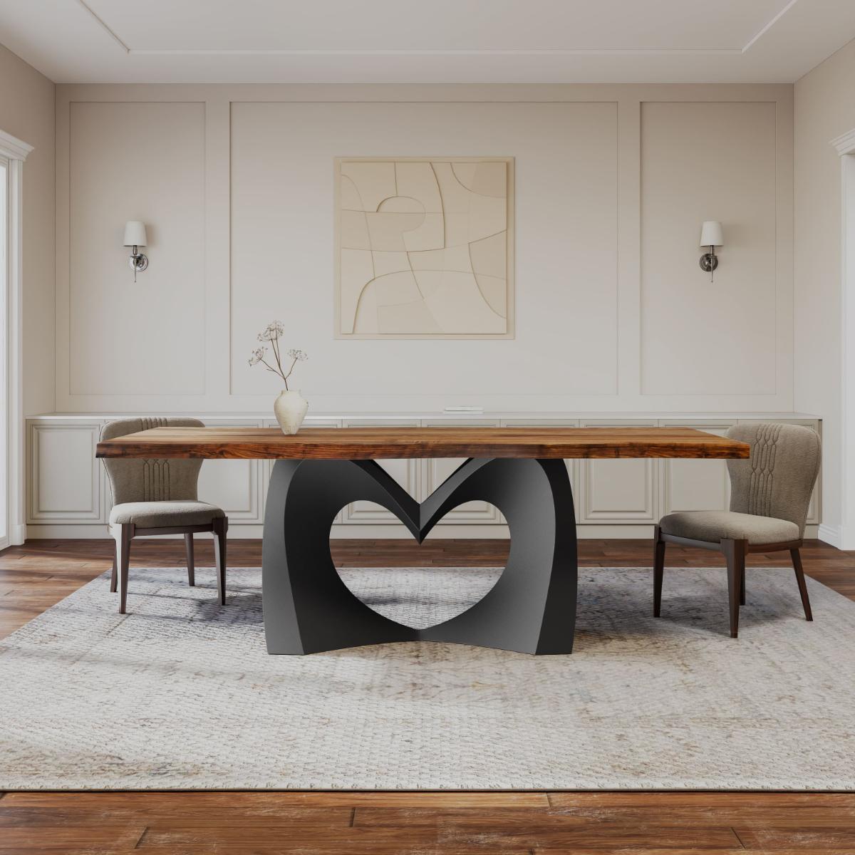 Fully handmade: Our Herz design showcases a heart shaped that adds a loving touch to your furniture. The unique dining table base offers a distinctive aesthetic that captivates and enhances any dining area.
