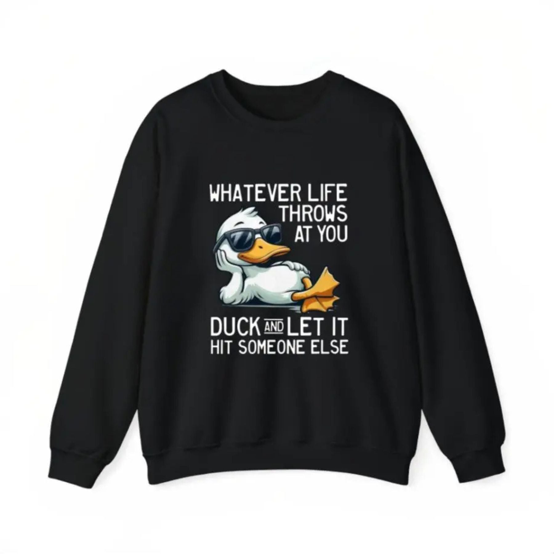 Whatever Life Throws At You Duck Shirt – Funny Sarcastic Quote Hoodie, Dark Humor Gift Sweatshirt, Aesthetic Weird Animal Top for Men & Women